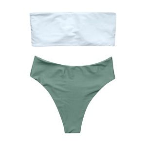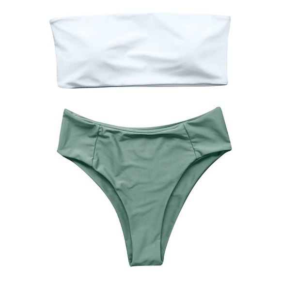 White bandeau top with green bottoms. Top is in good used condition and bottom is like new - didn’t get to wear them because I did not like the fit on me.
