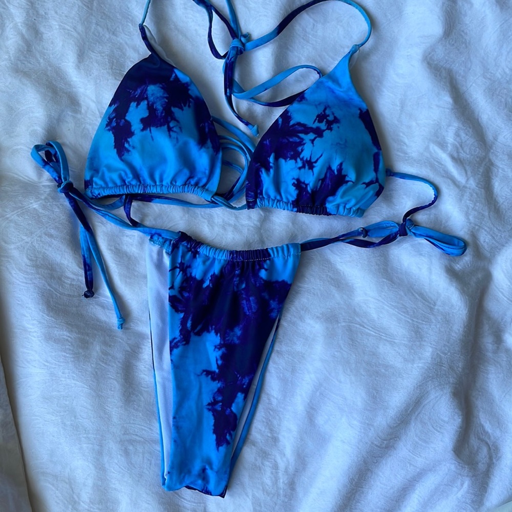 Two color bikini Top medium Bottom large String ties Cup inserts New