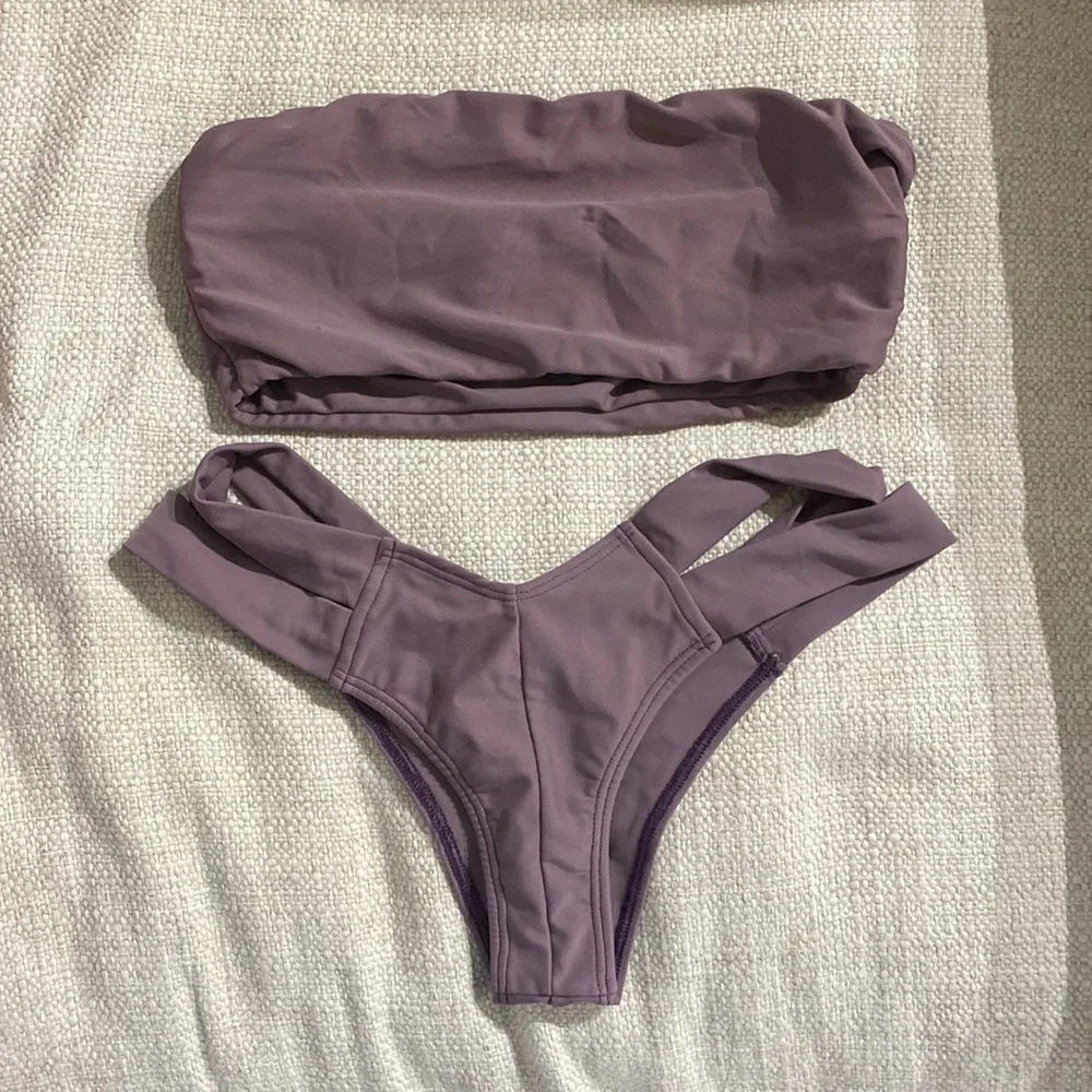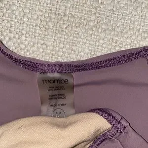 Purple Montce bathing suite. So cute and flattering, bottoms are too big on me.