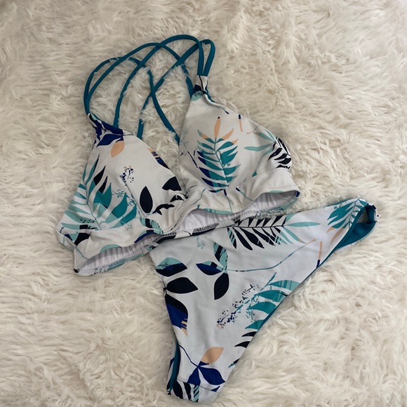 Cupshe bikini with reversible bottom and removable cup padding. Bottom is thong style