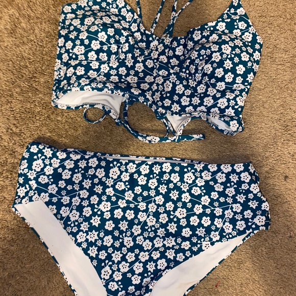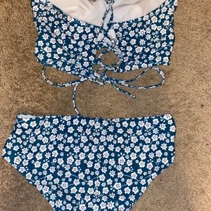 Ties in back, removable pads, high rise bottoms