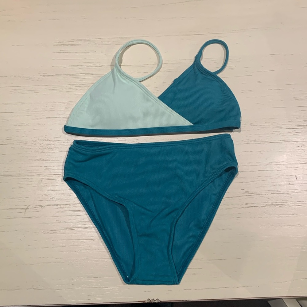 SHEIN two piece bikini. No stains or tears. EU size 130 which is size 9/10 in US. Color is dark green and light green.