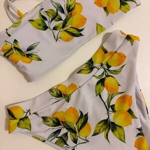 Missguided Lemon Print Bandeau top & high waisted bottoms