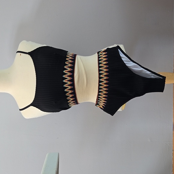 Chevron Tape High Waisted Bikin set Tried on but never worn Black with colorful trim design Size M