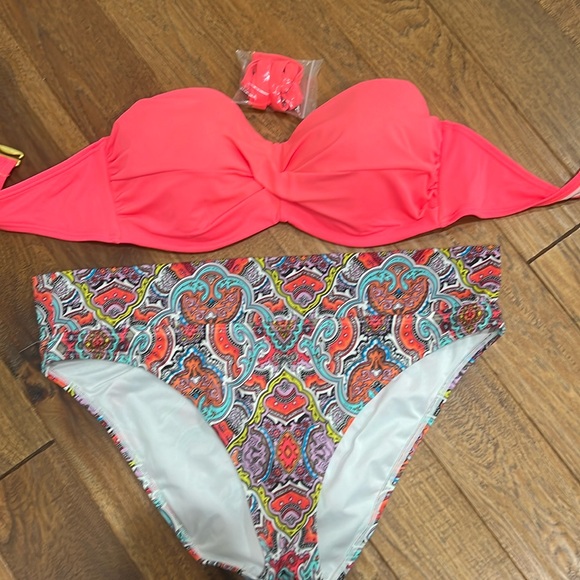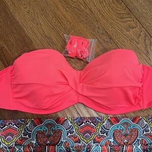 Victoria’s Secret bikini. Top size 38D with underwire, bottoms size XL. Good condition, tags cut out. Smoke free, 🐶 friendly home.