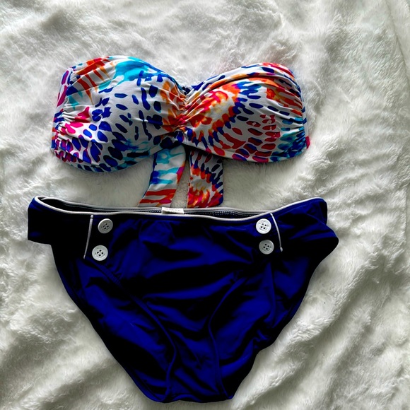 Two piece halter top bikini I, full bottom coverage. Very comfortable. Padded bra tie back.