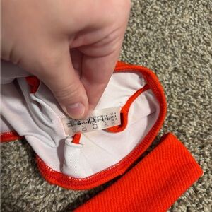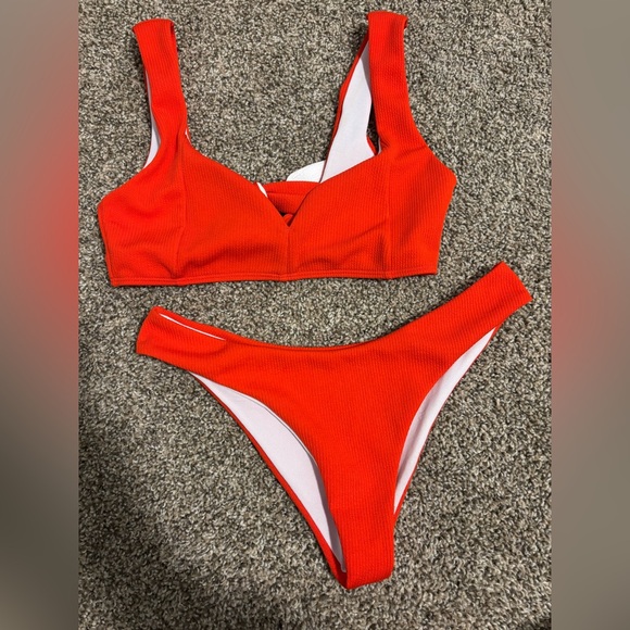 Bold orange bikini with a sleek design. Ideal for summer fun.