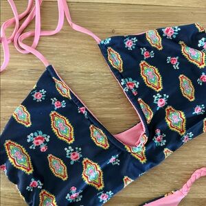 Good condition. No tags but looks like a small. See last photo where a little fraying started in center of top.