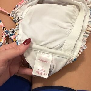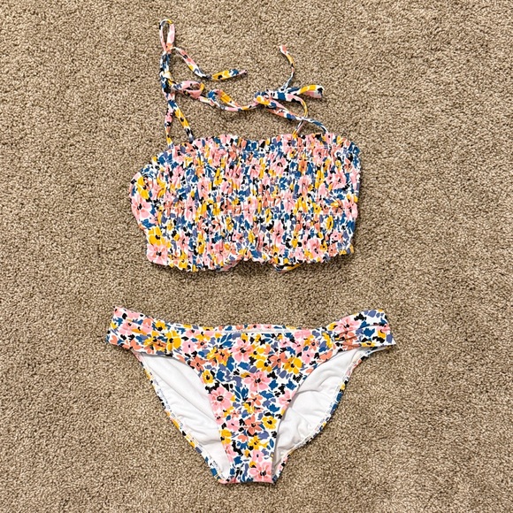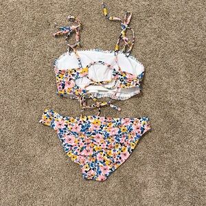 Multicolored floral bikini. Tie adjustable straps. Removable cups. Bottoms are slightly cheeky. Never worn.