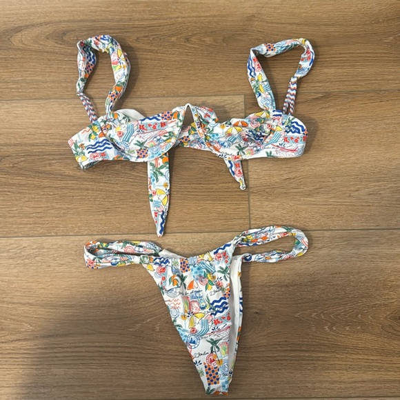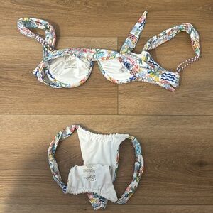 Bydee bikini with underwire top and VERY cheeky bottoms. Worn once and in perfect condition. Top is a medium, bottoms are a small.