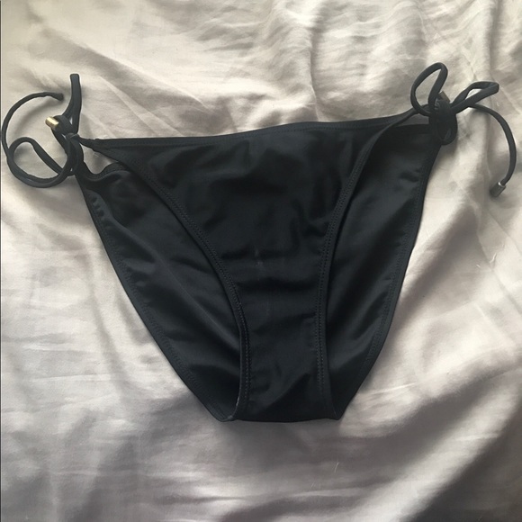 a black bikini bottom that's never been worn and has adjustable strings