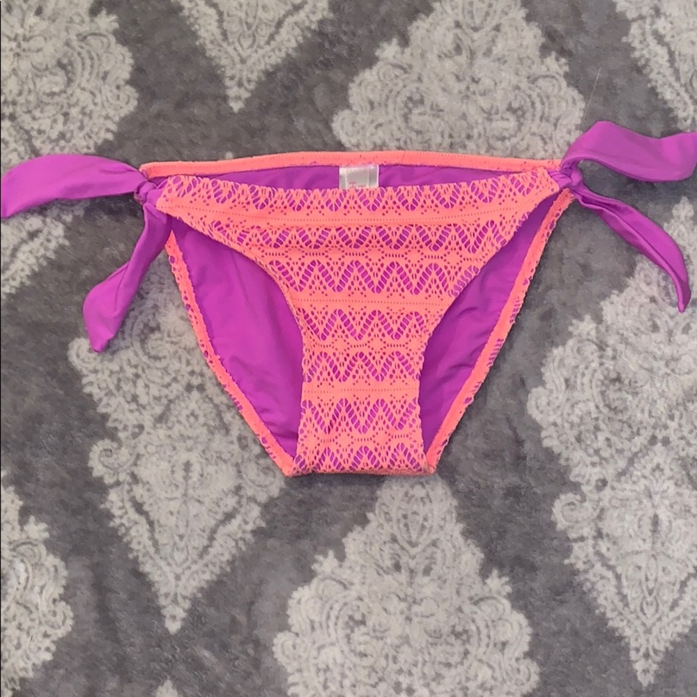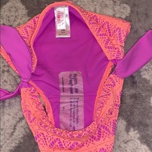 Size XS. NWOT. Light purple and light orange. Liner still inside.ties on the sides to tighten. 96%polyester and 4%spandex. Very fun ! This bottom can mix and match with many tops.