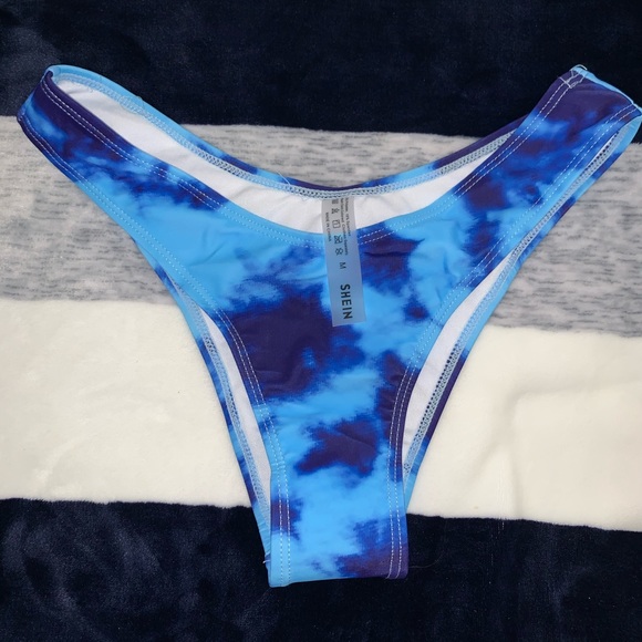Brand new. Never been worn. Bikini Bottom Bottom: size Medium Low rise and cheeky bottom Blue tie dye