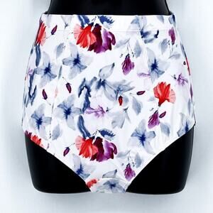 Bikini Bottom Classic High Waisted in White and Multi Color Floral Print Size XS
