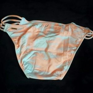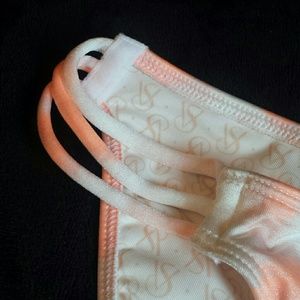 This is a small bikini bottom from Victoria's Secret. The style is The Knockout Bikini Bottom and the colors are peach and white (Paradise Peach). It's originally priced at $43 so now (22) it's over $20 off! :)
