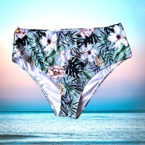 Bikini Bottoms 3XL New Full Coverage Wide High Leg Stretch Waist Floral Pineapple