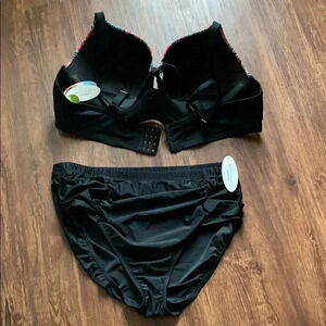 Bikini Boutique Black Leaf Print Swim Top, Brief 3X NWT