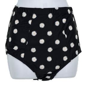 Bikini High Waisted Bombshell Bottom With Daisy Print in Black Medium