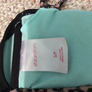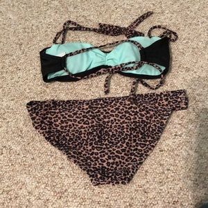 Black and cheetah print bikini. Inside is teal. Worn a few times.