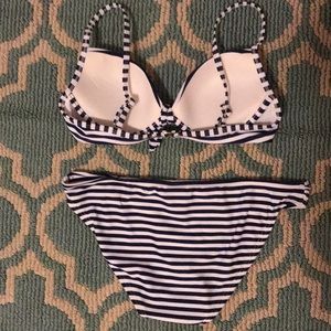 Striped bikini set, navy and white, sadly didn’t get to use. Push-up bra. Medium top and bottom. Target!
