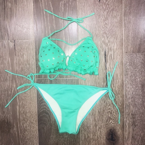 ✔️excellent condition , barely used ✔️Top + bottom sale ✔️gold heart studs on the top ✔️no stains, no rips