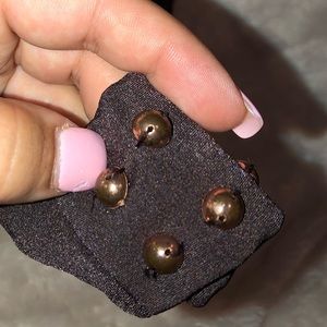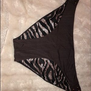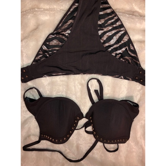 Brown Bikini Set! There is some discoloration on a few of the studs but it isn’t noticeable on or in pictures. I cut the tag out of the bottom but they fit like a medium.
