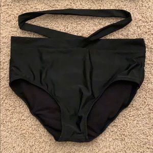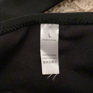 This high waisted bikini set is super cute and very supportive. The top has crisscrossed straps in the front and the bottoms have a strap that goes around your waist. Both the top and the bottoms are a size large. Never worn.