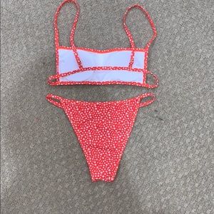 Brand new. Never worn. (selling bc its not the right size) super soft. Has removable padding and a decent amount of coverage in the back of the bottoms. Also has adjustable straps