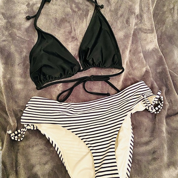 Bottoms size 12 by H&M Black and white stripes Top size L by Old Navy Glossy black Lydia Deetz got to the beach vibes...