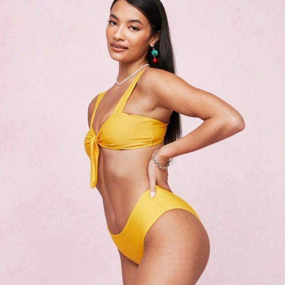 We shoulda sea-n it coming...These bikini bottoms feature a mid rise, high leg silhouette, and medium bottom coverage. Team with the matching bikini top, strappy sandals, cat eye sunglasses, and your favorite sunscreen (duh). These bikini bottoms feature a mid rise, high leg silhouette, and medium bottom coverage. Model is 5'9' and wears a US size 6/UK size 10. Fabric: 82% Polyester, 18% Elastane. Lining:100% Polyester. Machine wash. Model wears size M