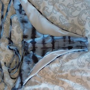 This vacation bikini set is so sexy! π Perfect for water activities! I wore this once to Las Vegas! π The top has a hook on the back to hold it together. It's a light blue and dark blue color in a tye-dyeish pattern. (No cover-up skirt) (Model pictures are from ShopPeachyBunz Instagram)