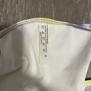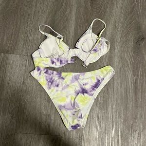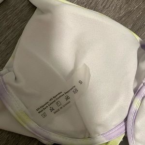 Super cute tie dyed bikini! It’s been worn 2 times but the top didn’t fit me right. The colors are more vibrant in person.