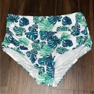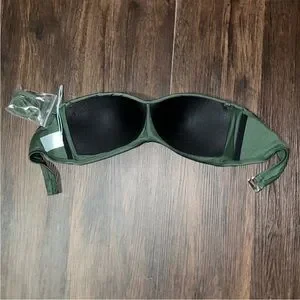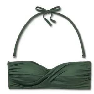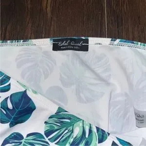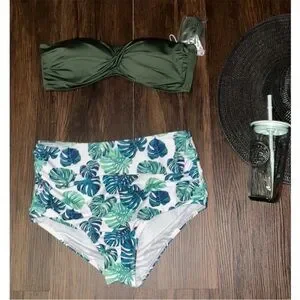 NWOT bikini set. Eden qual bottom. Tummy coverage. Bikini back coverage. Bottom is size L , more like a 10. Stretchy. Bandeau swim top adds a playful touch to swimwear. Sewn-in molded cups for shaping and support. Swan-hook back holds it securely on. Includes removable halter strap for a second way to style. Solid-color swim top looks great with both solid-colored and patterned bottoms. Model wears size L in top and is 5' 9.5". * cup and hat not included