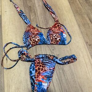 Stylish bikini set with vibrant colors. Perfect for the beach or spring break