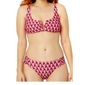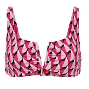 Bikini Swimsuit Top Pink Black White Geometric Print V-Wire Woman's S 4/6 LR112