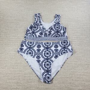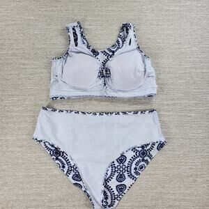 Bikini Swimwear Womens 4XL Blue White Keyhole Soft Padding Swim Beach Summer