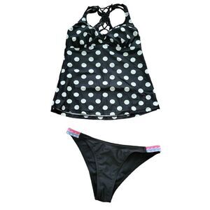 Tankini Black Polka Dots Braided Color Pop Two Piece Bikini Bathing Swim Suit NEW sz S! Super cute! See photos for details.