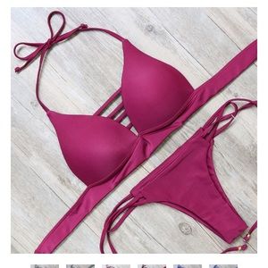 Eye catching maroon bikini top that is way too small for me. It is a medium but runs like a small. Feel free to ask questions or make an offer!