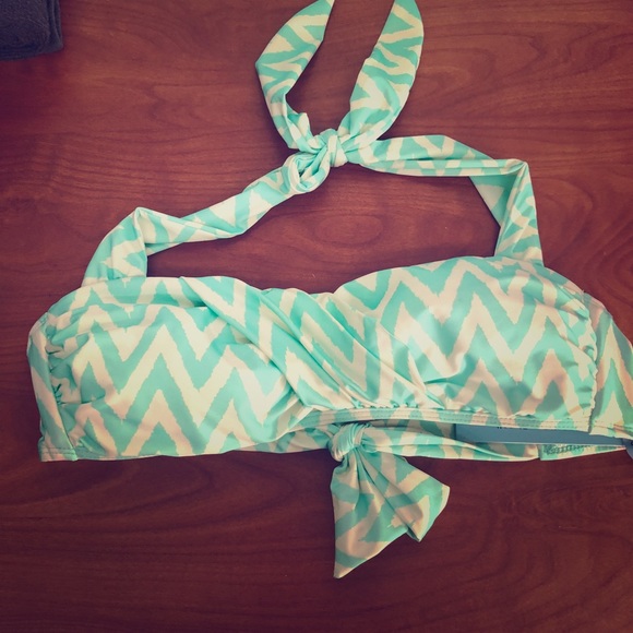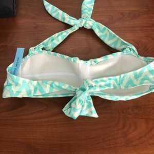 Chevron Patterned Teal Bikini Top. Halter style. Tie Closure around neck and back. Size:Medium. Cup Size C/D. Brand New with Tags.