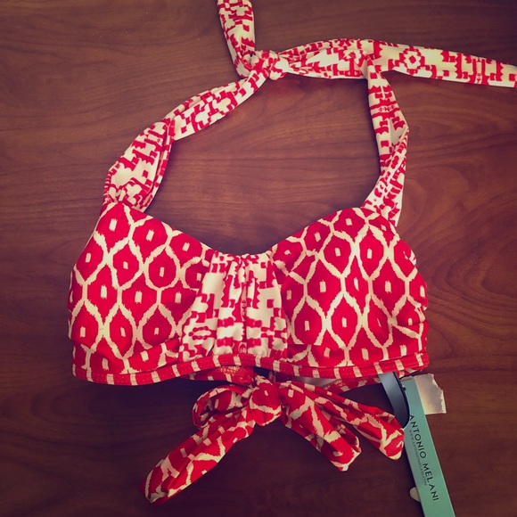Red and White Printed Bikini Hater Top. Tie Closure around neck and back. Brand New with Tags. Size: Small. Cup: B/C