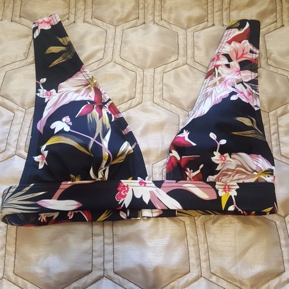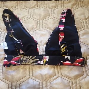 Cute black bikini top with tropical floral design. Has adjustable straps and padding for support.