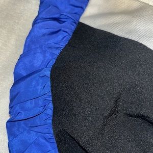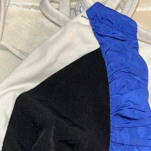 Blue, black, and white bikini top.