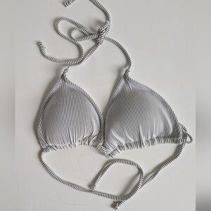 Bikini Top Bundle (3) Size Large Black White Stripe Tropical Print
