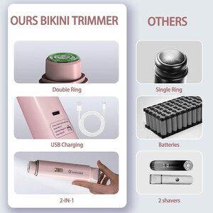 LONG BATTERY LIFE WOMENS ELECTRIC RAZOR: Stay powered up with our USB chargeable electric razors for women, offering long-the bikini trimmer runs up to 5 hours on 60 minutes charge life for on-the-go grooming. Perfect for electric shaver for women and other personal care needs