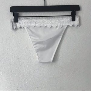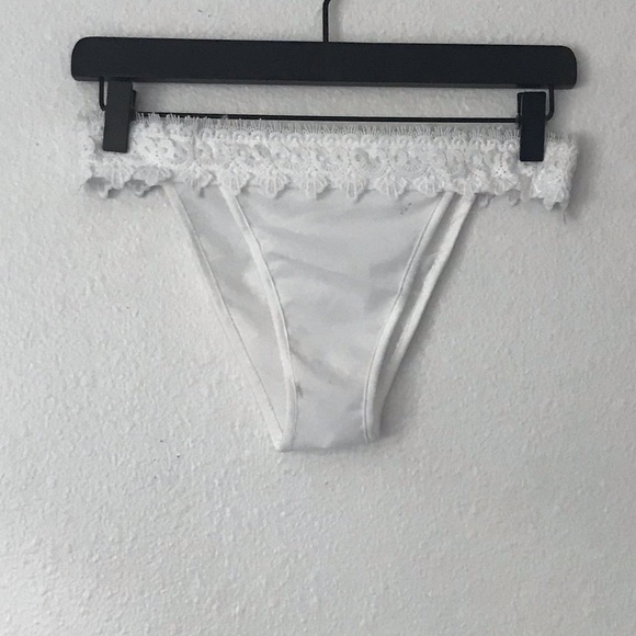 White bikini bottom with cute lace waist band. In great condition never worn. Slightly see through material.