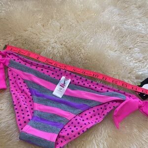 NWT size m Thicker tie at waist one side is pink purple and grey striped a Other side is pink poka dot
