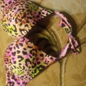 Beautiful bikini bra top pink green purple brown black match with any one of this colors to a solid color bottom .
