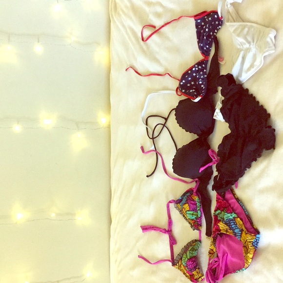 Black bikini and white bottoms in used condition. Butterfly xoxo bikini and American top like new.