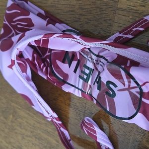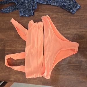 3 swimsuits the orange and blue brand unknown size small lightly used. Pink is shein with a medium top small bottoms new.