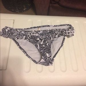 2 black tops, 2 black bottoms, 1 black and white with ruffle bottom, 1 white bottom, 1 white and gold top. If more questions or want to see more pictures just ask!